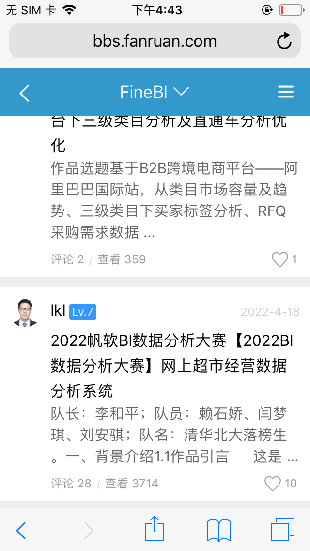 6、最后来聊下帆软的比赛。我是帆软的粉丝,帆软也算是国内的龙头,因此我对帆软的期待是很高的。帆软从2020年开始,赛事做的都是挺棒的。本人荣幸也获得过比赛的奖项,所以我觉得帆软在市场的定位和比赛的宣传力度都是正向的,当然这其中也有产品的市场占有率、生态建设等因素。私下里,也好不少帆软的内部运营伙伴聊过一些想法,但帆软的比赛,在我看来似乎也进入了一些瓶颈,当然帆软的瓶颈也是整个BI行业的瓶颈,我在后面会进行阐述。不过整体评价赛事,帆软比赛的价值是可以和tableau抗衡的。