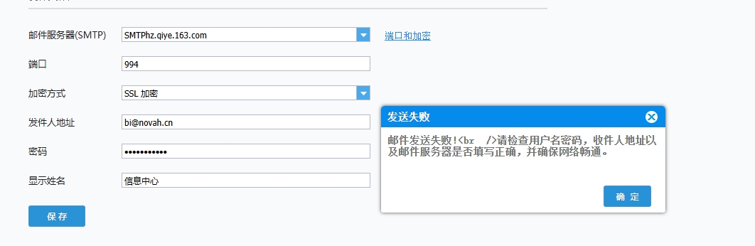 邮箱以前配置好一直是好用的,最近不知什么时候突然不能发邮件了,发送测试邮件一直报错,更改端口号465,25,加密方式也是换了又换都不能用,不知道是什么原因