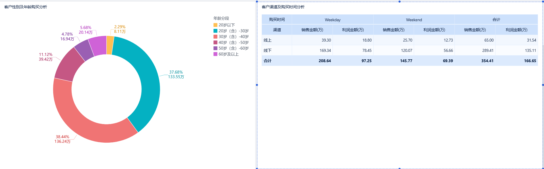 包括地区销售分析、产品销售金额及利润金额分析、客户购买年龄段占比分析、客户性别及年龄购买分布、客户购买渠道及购买时间分析。