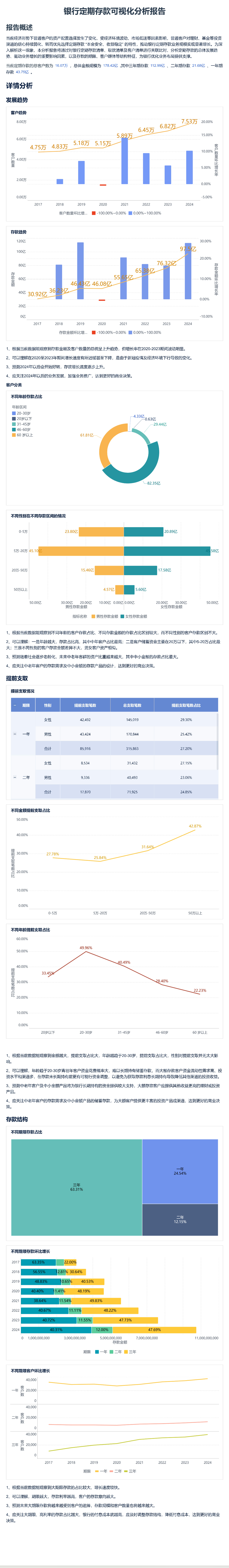 本次作品的主题是银行定期存款情况,当前经济形势下普通客户的资产配置选择发生了变化,受经济环境波动、市场低迷等因素影响,普通客户对理财、基金等投资渠道的信心持续弱化,转而优先选择定期存款 “本金安全、收益稳定” 的特性,推动银行定期存款业务规模实现显著增长。为深入解析这一现象,本分析报告将通过对银行定期存款清单、取款清单及客户清单进行关联比对,分析定期存款的总体发展趋势、驱动业务增长的重要影响因素,以及存款的期限、客户群体等结构特征,为银行优化业务布局提供支撑。