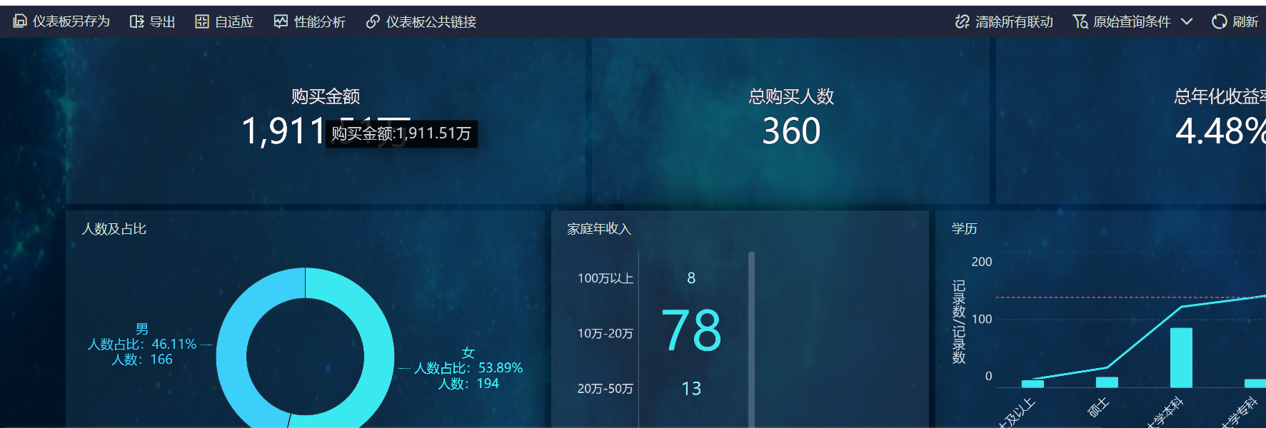 1.学习初衷 个人感兴趣的方向和领域-数据分析等,也是出于工作需要。 2.作品简介 (1)业务背景 通过银行理财产品用户分析,转变营销方式,优化理财产品,从而提高理财产品的购买人数和金额。 (2)数据来源 网络 (3)分析思路 从用户属性、购买偏好、收益等多角度分析。 (4)数据处理 直接用原数据。