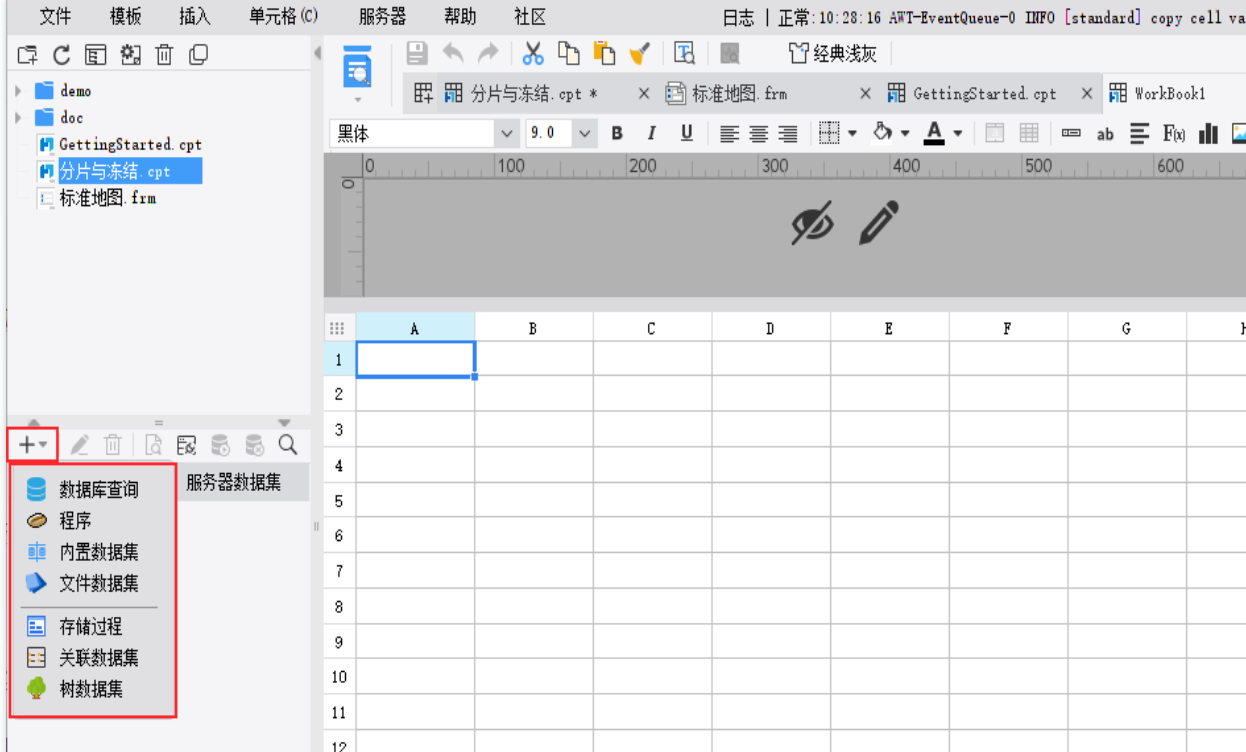 服务器数据集是对应于整个报表工程的,更换一个模板或新建一个工作簿,仍然可以用服务器数据集中的数据。