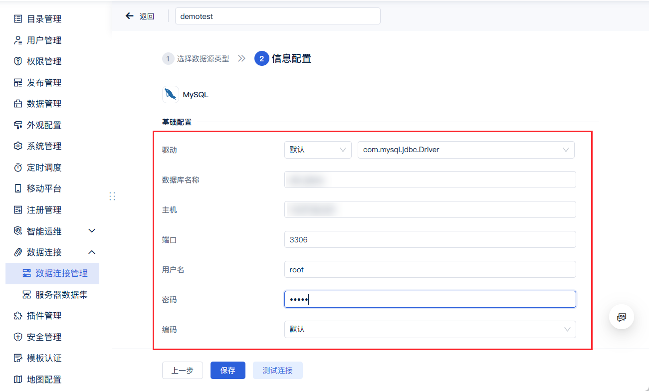 4,输入对应连接信息后完成,平台端添加的数据连接可在设计器中查看