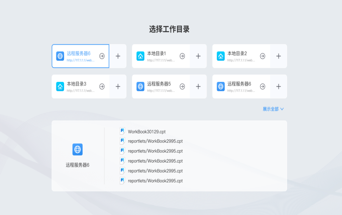 2、首次默认进设计器内置自带的工作目录,如果自己有定义远程工作目录,进入时可选择目录。(详见三、平台操作)