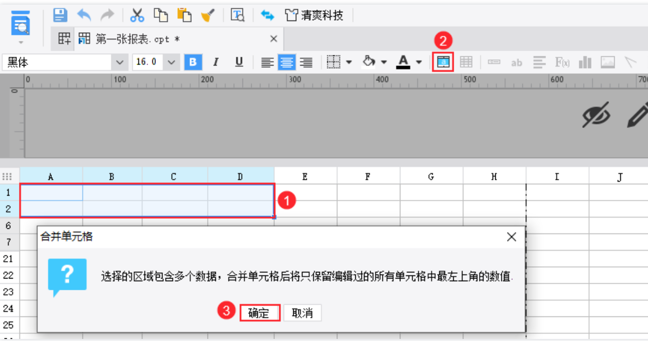 2,设置对应标题合并单元格并及将数据集需要展示的字段拖入单元格中
