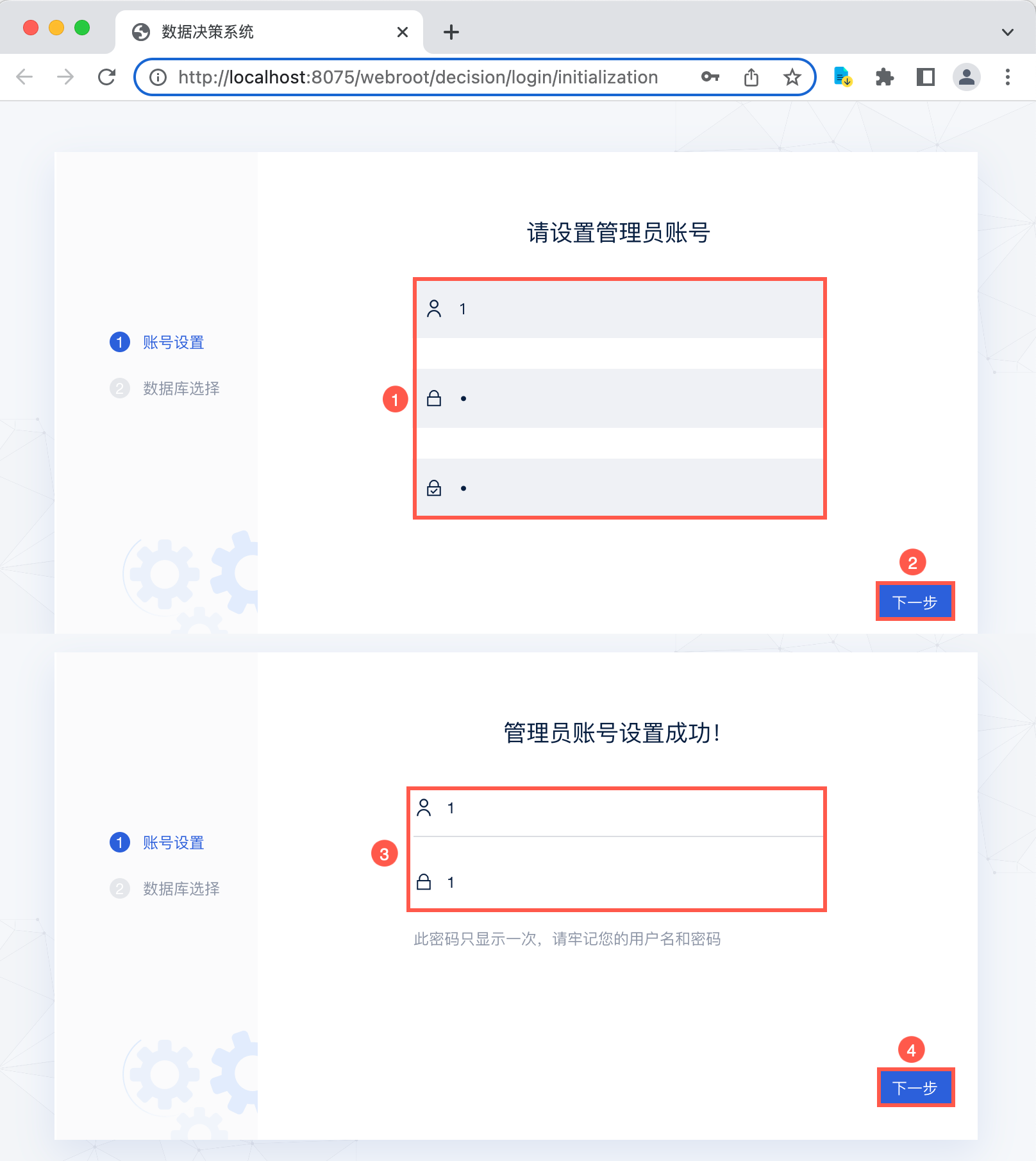 首次进入会设置管理员账户密码