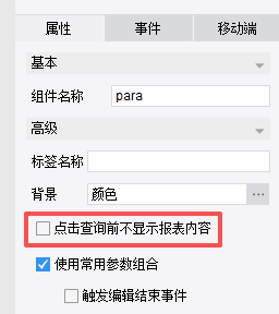 如果使用参数控件后,预览打开不默认加载数据,则点击控件将《点击查询前不展示报表数据》取消勾选