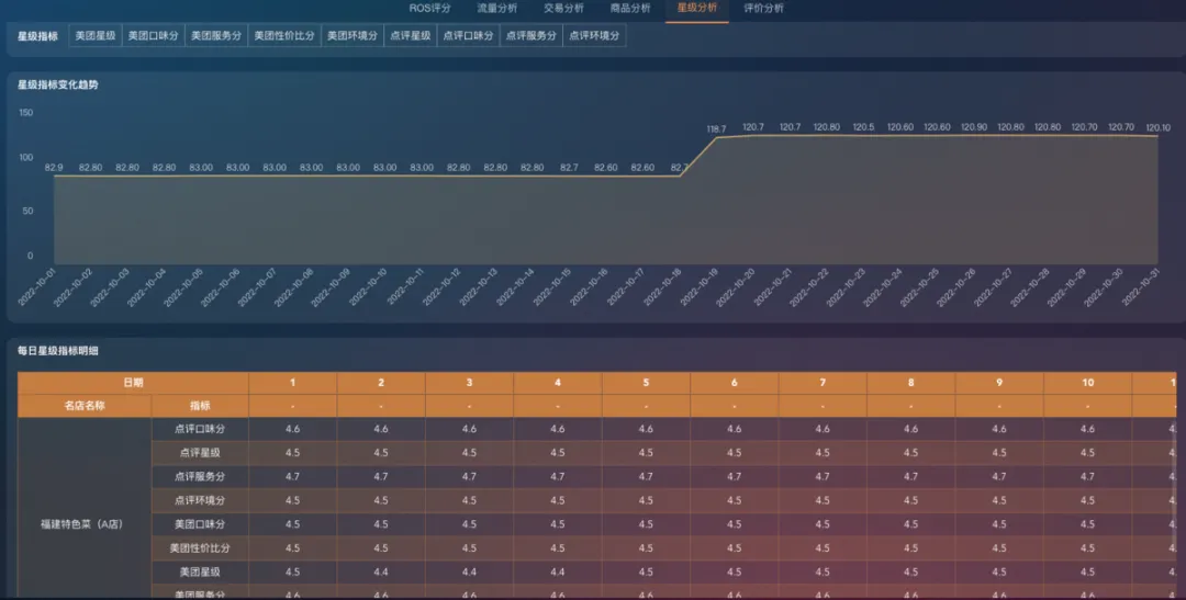 通过监控以上评分,帮助商家及时发现问题,从服务、环境、口味等不同方面进行优化。