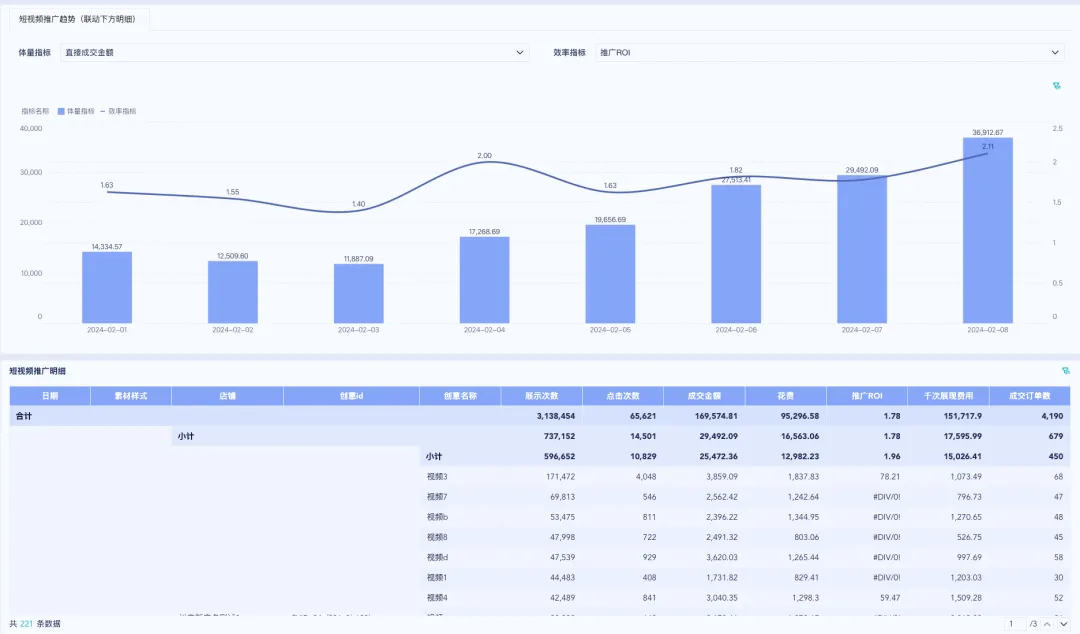 DOU+的数据可以通过不同维度(如日期、账户ID、视频ID等)聚合,帮助商家发现趋势和规律,进行多维度分析,从而深入了解广告效果并优化推广策略。以下是一些常见的数据分析场景: