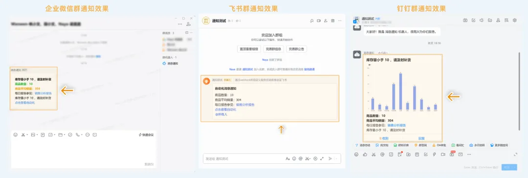 九数云支持智能报表推送机制,当系统检测到异常或达到预警阈值时,自动生成报表并推送至相关负责人。 报表内容可通过企业微信、钉钉、飞书等工具自动通知,确保问题第一时间传递到决策人。