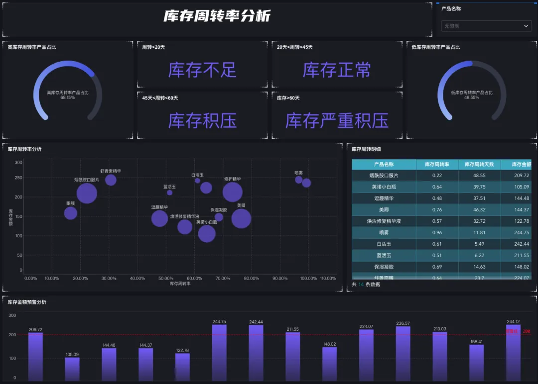 - 出入库与库存分析:实时监控商品动销状态、库龄、库存预警,实现合理补货与去化决策。