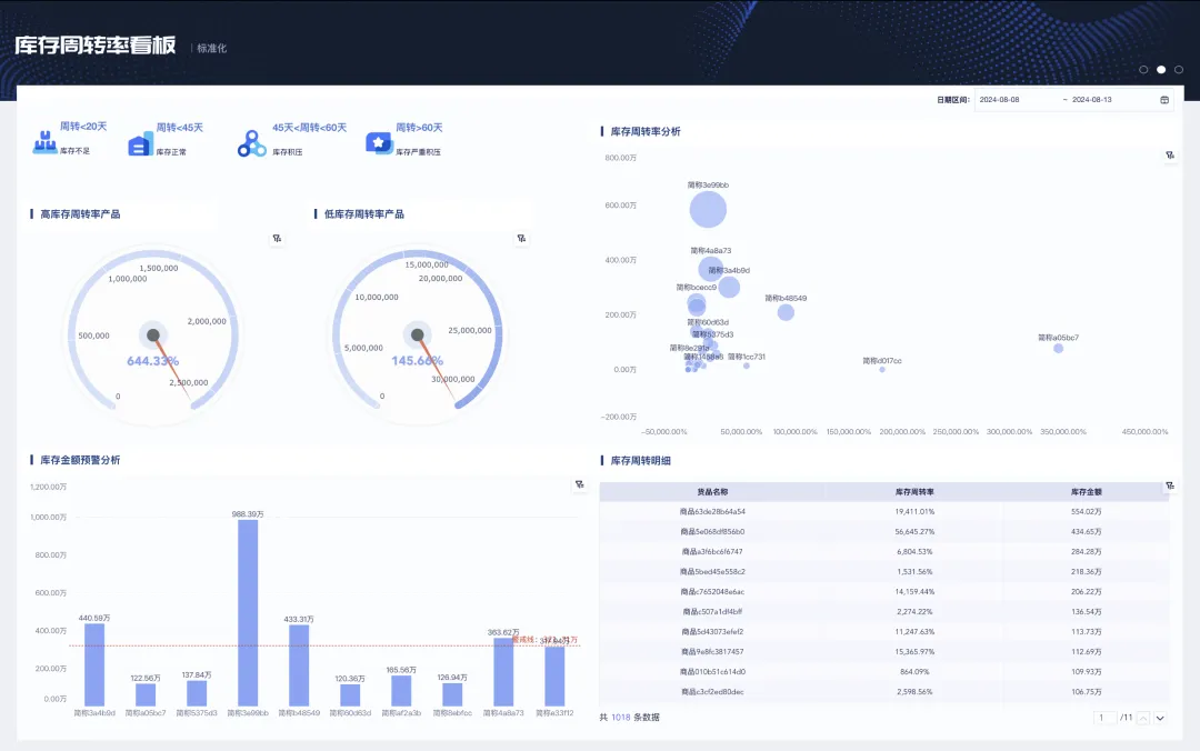 要解决这个问题,就得把周转率做成 可以分视角看的实时可视化看板,再叠加 自动化预警。