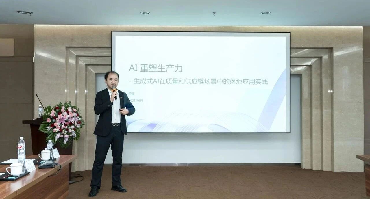 接着,国家统计局特聘AI专家李檀就“AI重塑生产力——生成式AI在质量和供应链场景中的落地应用实践”进行了前沿分享。他剖析了AI技术在质量检测、故障预测、供应链优化等具体场景的应用潜力,描绘了AI赋能军工制造、催生新质生产力的广阔蓝图。