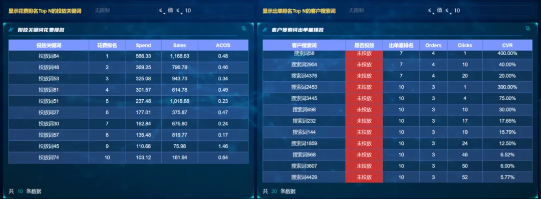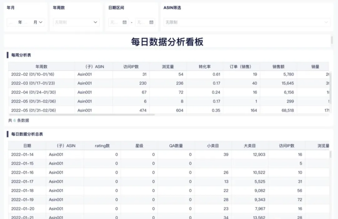 细节设计上,可以在日期、日期区间、ASIN上做筛选下拉框,快速匹配不同时间的特定ASIN数据。