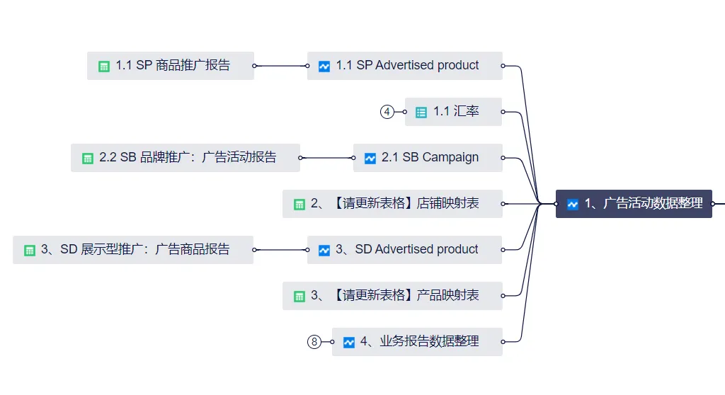 要实现全域、个性化的每日数据监控,需要将广告数据、业务报告(Business Report)数据、汇率数据、店铺映射表、产品映射表、前台数据等汇总起来,形成一张综合的每日数据表。