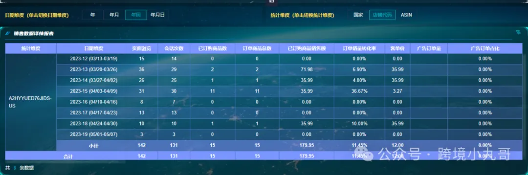 最直观的切入点是销量、销售额、毛利、毛利率等指标。结合 区域-国家-店铺-ASIN的层级拆解,可以识别不同市场的差异。例如,美国站毛利率更高,但日本站增长更快,就能指导资源倾斜。
