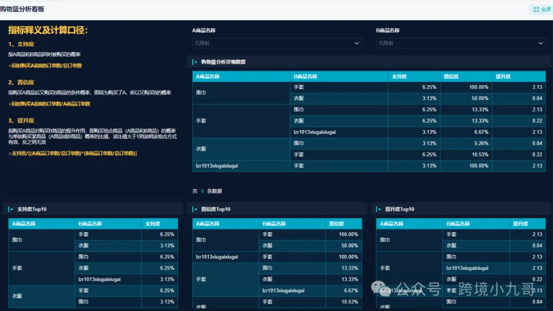 - SKU 销售详情:分析单品在不同时间段的销售额、转化率、退货率。