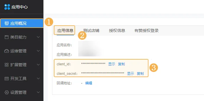 2)在页面中添加刚才获取到的 Client ID、Client Secret、店铺ID: