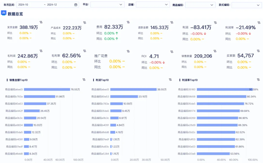 商家可以分析客户的购买频次、活跃度、复购率等,帮助制定个性化营销策略,提高客户留存率和转化率。