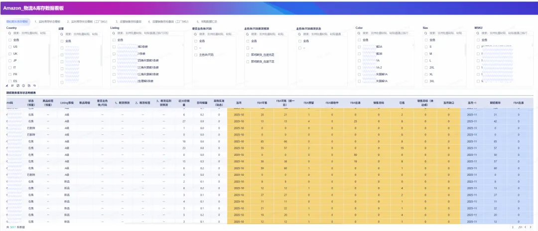 以站点+MSKU为维度,呈现全量FBA库存、本地库存及未来三个月的期初期末库存数据,实现库存动态监控与预警。