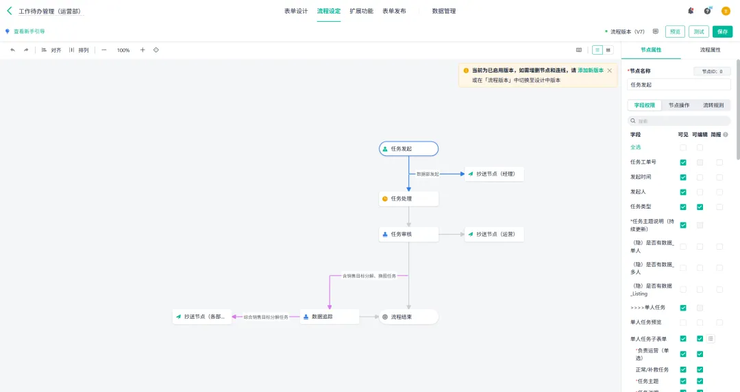 当投放销售看板监测到某个Listing广告表现低于预期时,系统自动生成业务流,经运营负责人确认并讨论后,任务将流转至具体执行人。