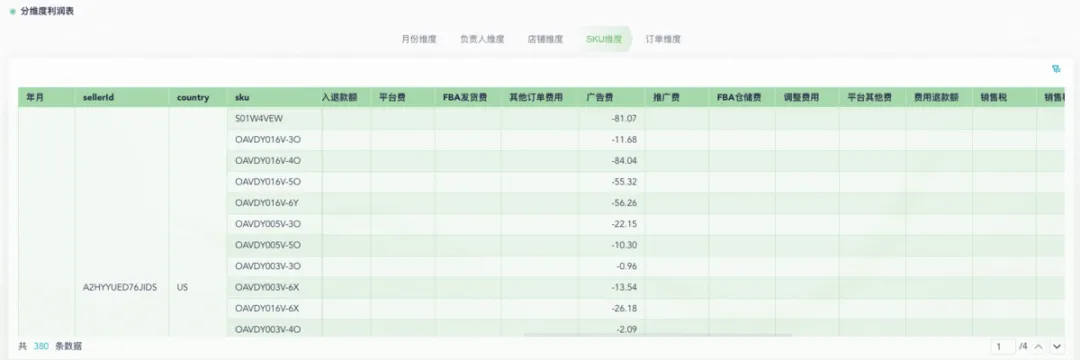 结合出厂FOB、装柜量、头程等数据,可以进一步计算出每个SKU的成本。