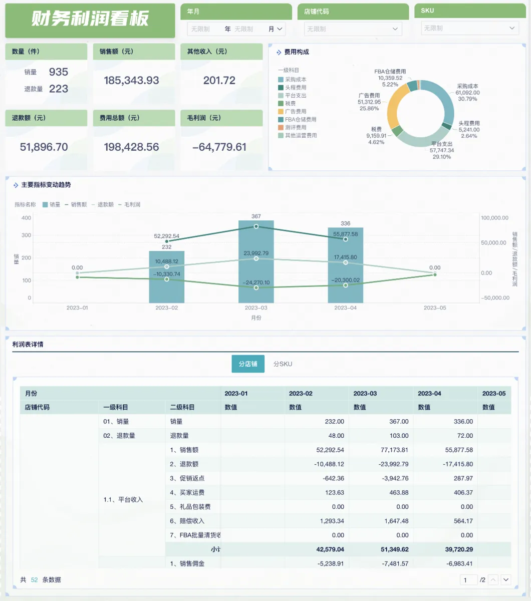通过对每一笔订单的利润计算,卖家可以追踪订单盈亏,识别异常订单和高利润渠道。