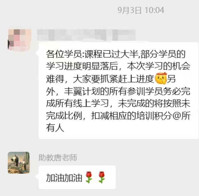 实施个性化的学习关怀措施:对于作业提交异常的情况,教学团队会主动联系学员,协助完成补交流程,确保每位学员的学习投入都能得到客观评价,切实保障学员的学习权益。