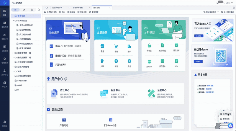 同时,应用体验方面,原来我们可能要写一些代码才能引入第三方平台数据,现在只需要花费几分钟时间,在界面上简单配置就可以完成第三方数据的引入了。与此同时,帆软还有一个应用复用团队,产出了相当多高价值应用模版,这些应用只需要替换第三方数据源,就可以快速被应用。