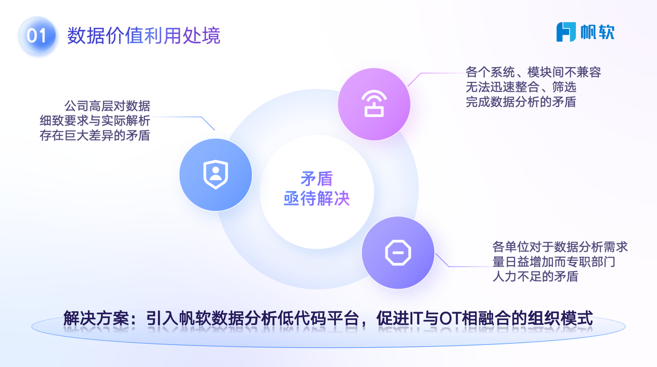二是各个系统和模块之间的不兼容,没办法去迅速地整合,然后进行数据分析。