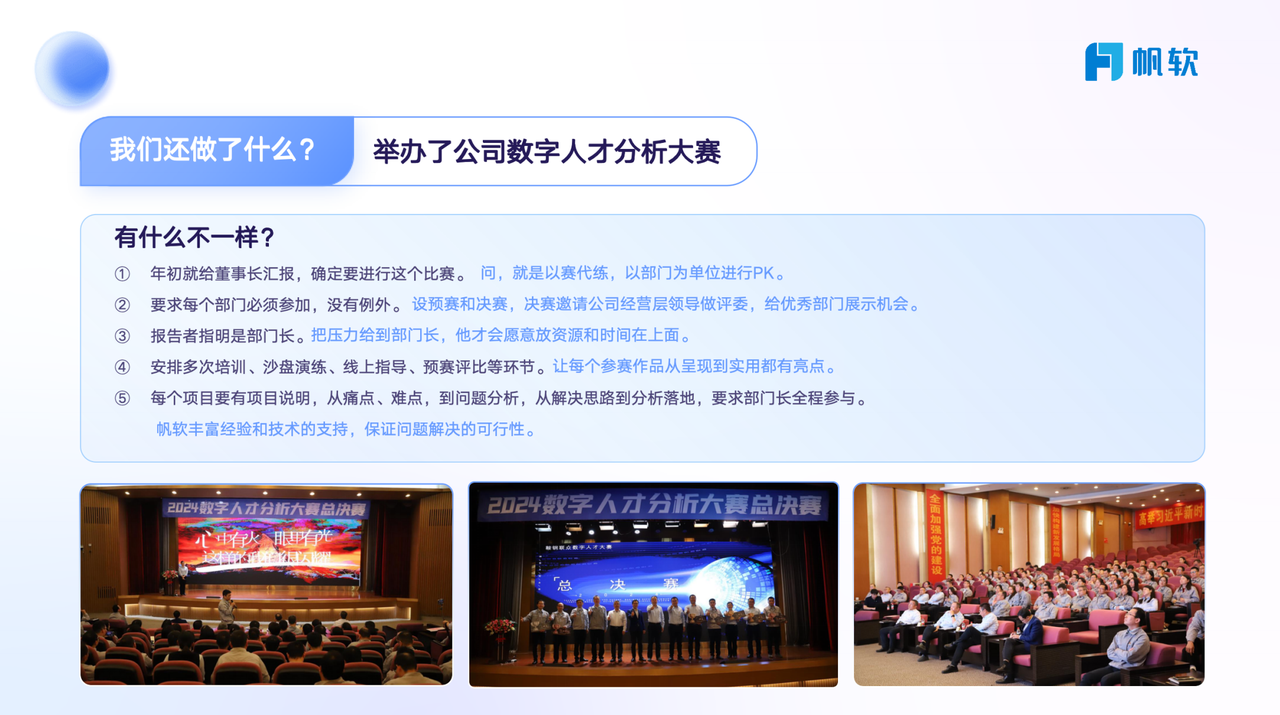 通过细致、针对性的汇报,让高层明白 “数据需求如何落地”——例如承诺 “组织200人培训,最终筛选50名各部门核心骨干,打造专属数据分析团队”,并持续反馈进度,调动高层对数字赋能的支持。