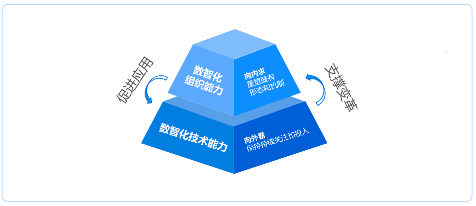 面对数智化转型新带来的诸多挑战,为实现数据智能驱动创新的本质目标,企业除了向外看,保持对于技术能力的持续关注和投入之外,还应该向内求,梳理并重塑自身既有的组织形态和运作机制,构筑起能够促进数智化技术能力应用的组织能力。