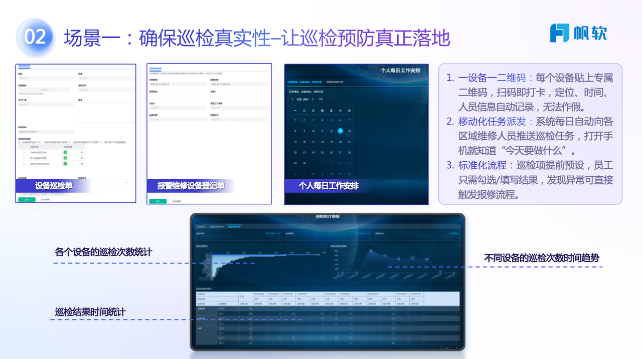 为了解决老厂巡检存在“是否真巡检、人员负荷不均”的问题,负责人用简道云搭建“二维码扫码巡检”体系。