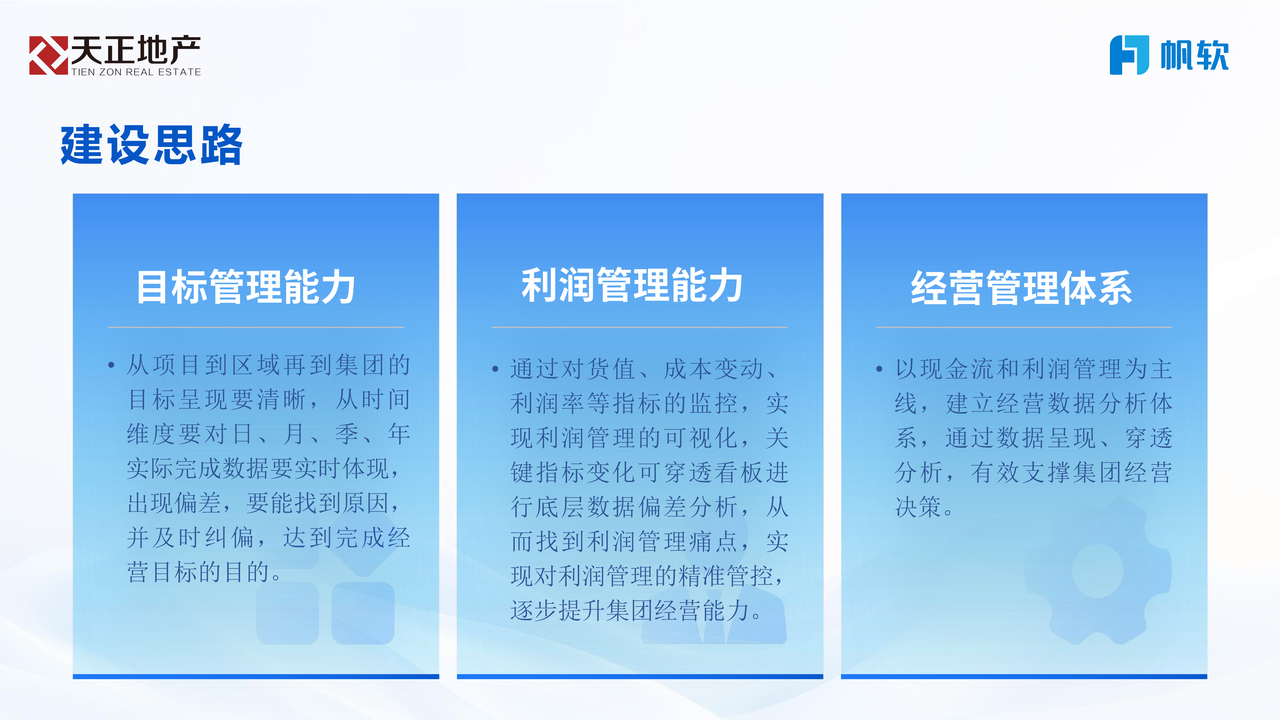 面对数据痛点,天正地产没有盲目跟风,而是围绕“让数据支撑决策”的核心目标,搭建了三大核心能力: