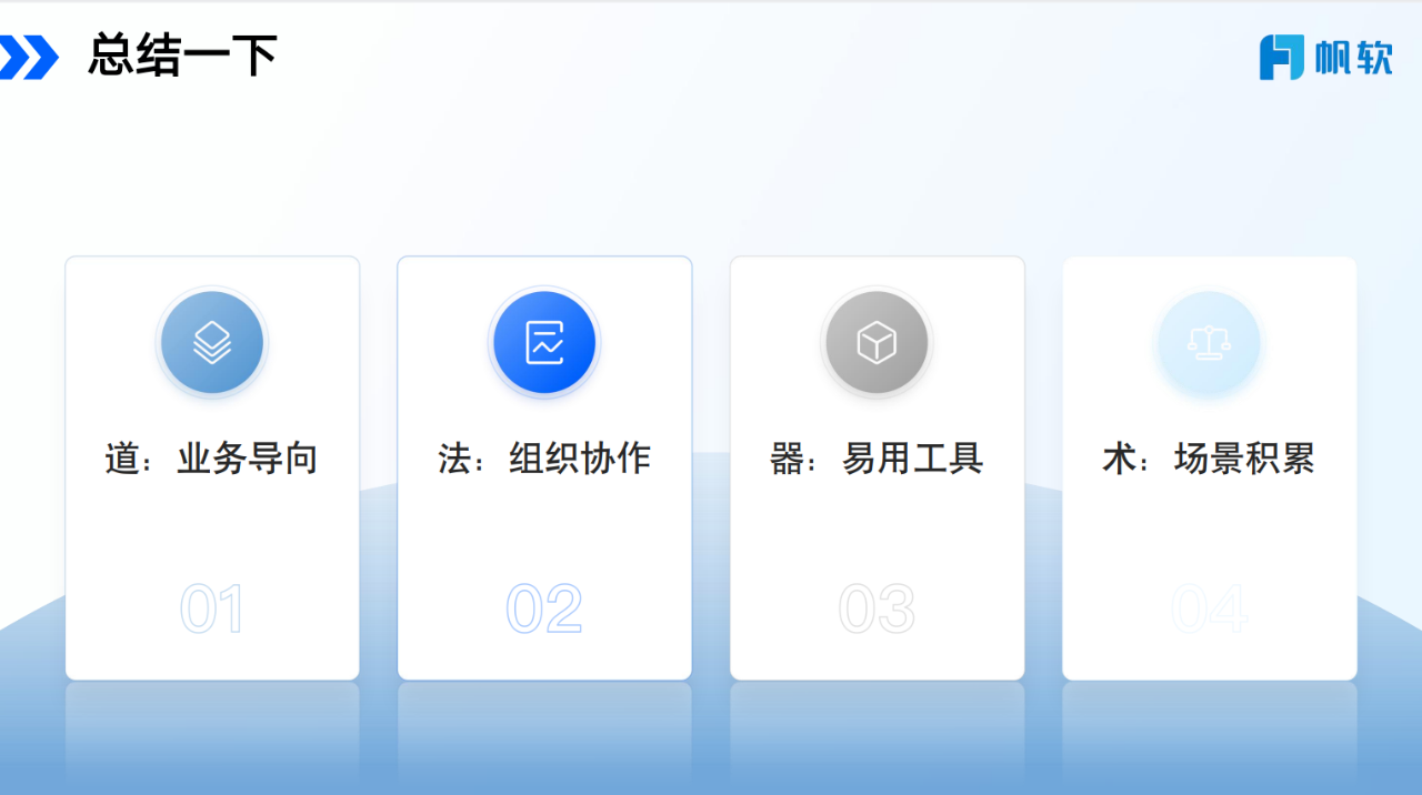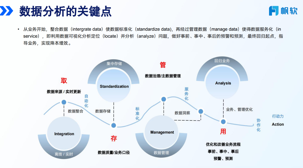 课程最后,梅杰院长总结了企业推进数据分析的几个层面:“道”指以业务问题为起点,“法”涉及跨团队协作机制,“器”为分析工具的支持,“术”则涵盖具体场景下的分析经验。他们提出,当数据能够切实回应业务需求时,更容易形成“数据-洞察-决策-价值”的良性循环,从而逐步支持企业的数字化进程。