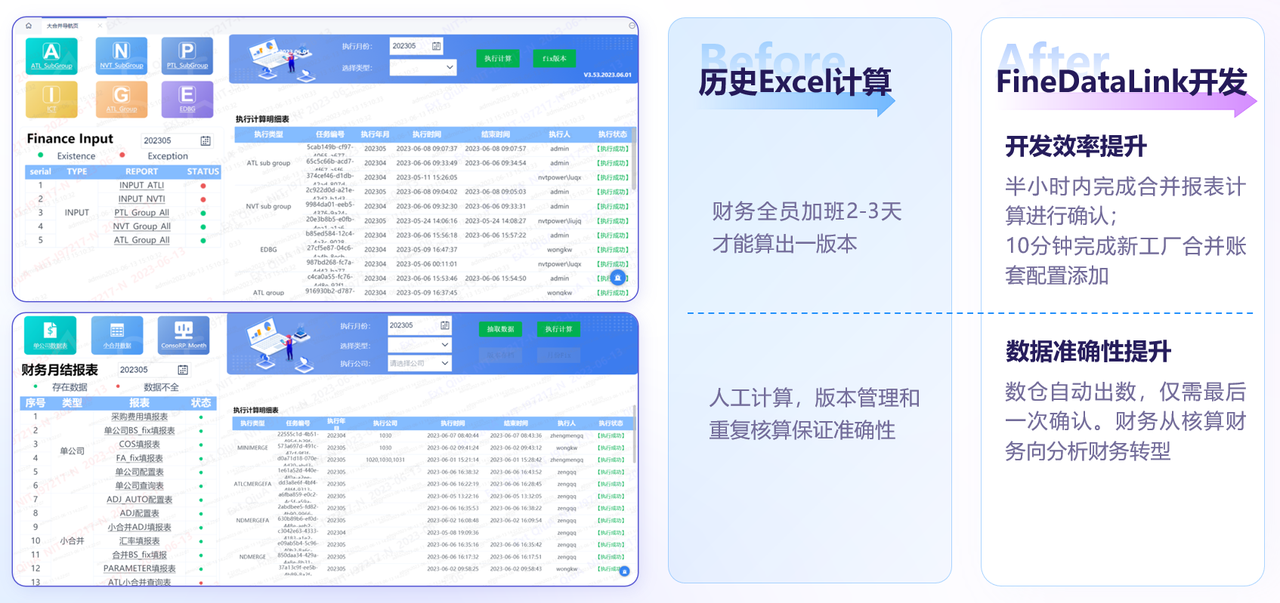 通过引入帆软系列产品,ATL在运维效率方面取得显著提升:单人运维任务管理能力从300个增至1000个;开发效率提高约三分之二,原本需要半小时的任务现在十分钟内即可完成。