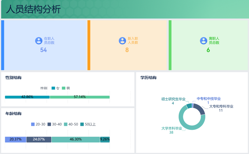 - 识别员工信息指标:根据数据分析,识别员工学历结构、离职原因分析