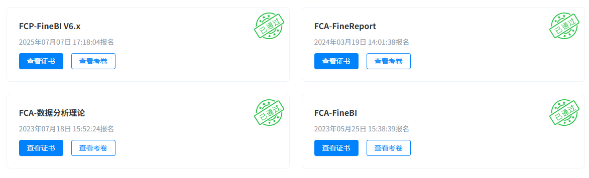工作中,2025年主导了项目“市场收入总览驾驶舱”项目,这是由我们主动为业务部门提供的支持,过程中反复与业务部门对接高层领导的需求,不断地在BI系统调整微小的计算逻辑、图表结构、数据位置等等,最终项目顺利落地。让我受益最深的功能是Fine BI的公共链接,这真是本年度最伟大的发明了。往常, 每次有新功能迭代,都需要发布一个版本,才可以跟业务部门、领导汇报演示,费时费力。现在我只需要把公共链接丢在群里,及时@他们通过链接进去,就可以实时“监控”看板的数据变化,所以整个项目的过程,大家都积极地提自己的想法,而且大部分想法都落地了,领导也很满意整个开发过程。这个项目也被公司评为本年度“突出贡献奖”。我也在2025年7月7日顺利通过了帆软公司的FCP-FinBI的资格认证,截止投稿时,也成功通过了工信部《大数据分析工程师(中级)》认证,感恩。