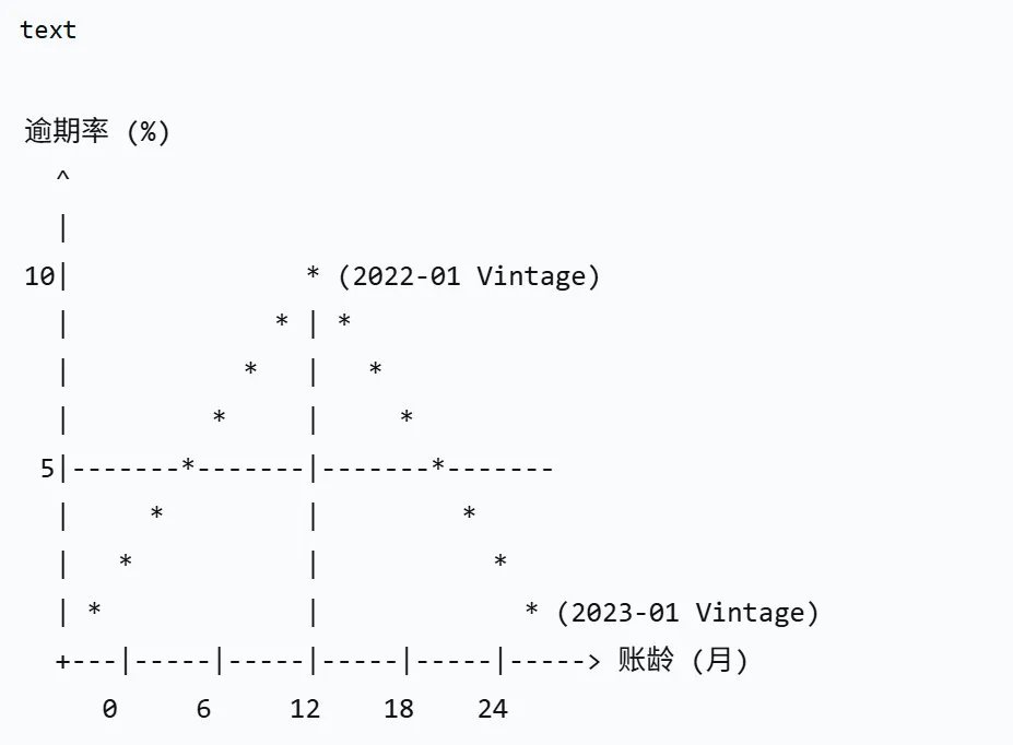 具体来说, 企业分析某个批次的贷款(Vintage)的还款情况, 可以通过其逾期率的变化趋势,来预测新批次贷款未来的损失情况。