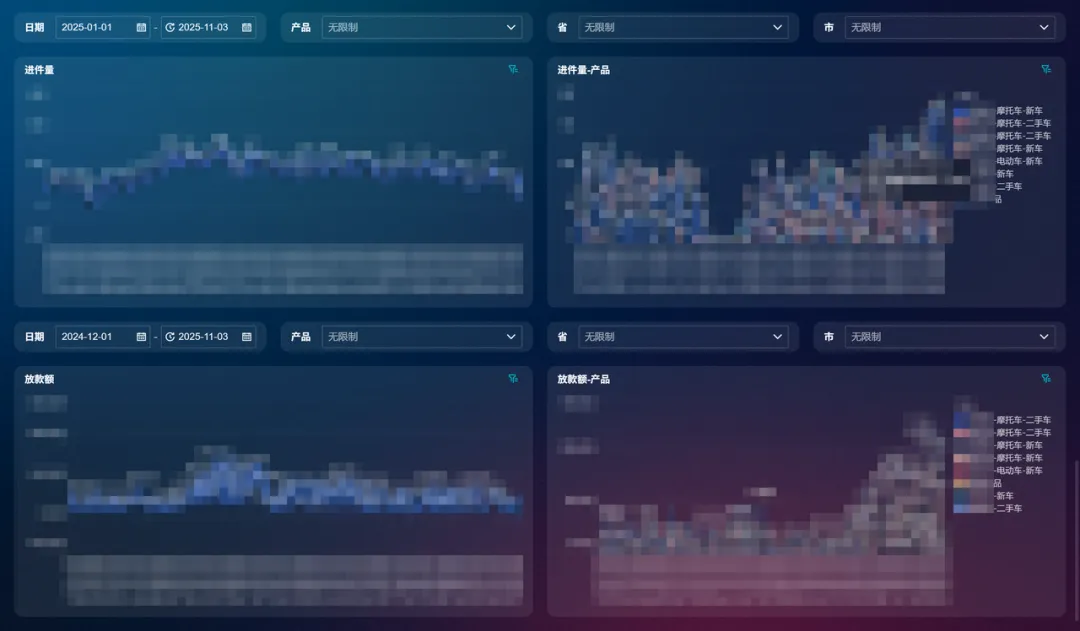 针对多产品、多渠道的业务结构,企业搭建了统一的运营驾驶舱。各类订单量、产品占比、业务趋势等指标实现可视化呈现。数据实时联动,使不同模块的指标能够交叉验证,为企业提供全面的业务透视。