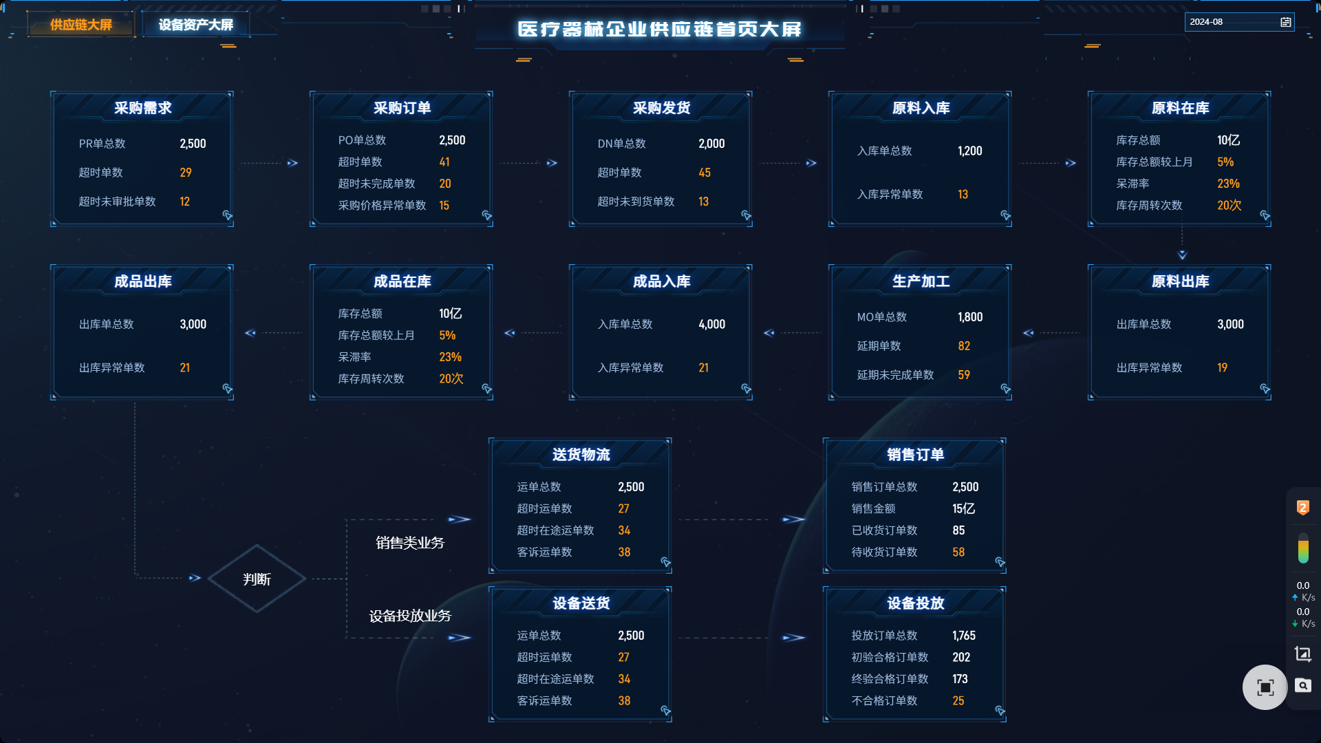 ● 医疗器械供应链看板:呈现医疗器械供应链的实物流——原料采购、生产加工、成品出库到客户交付全流程信息,从 “源头” 到 “终点” 扒得明明白白。