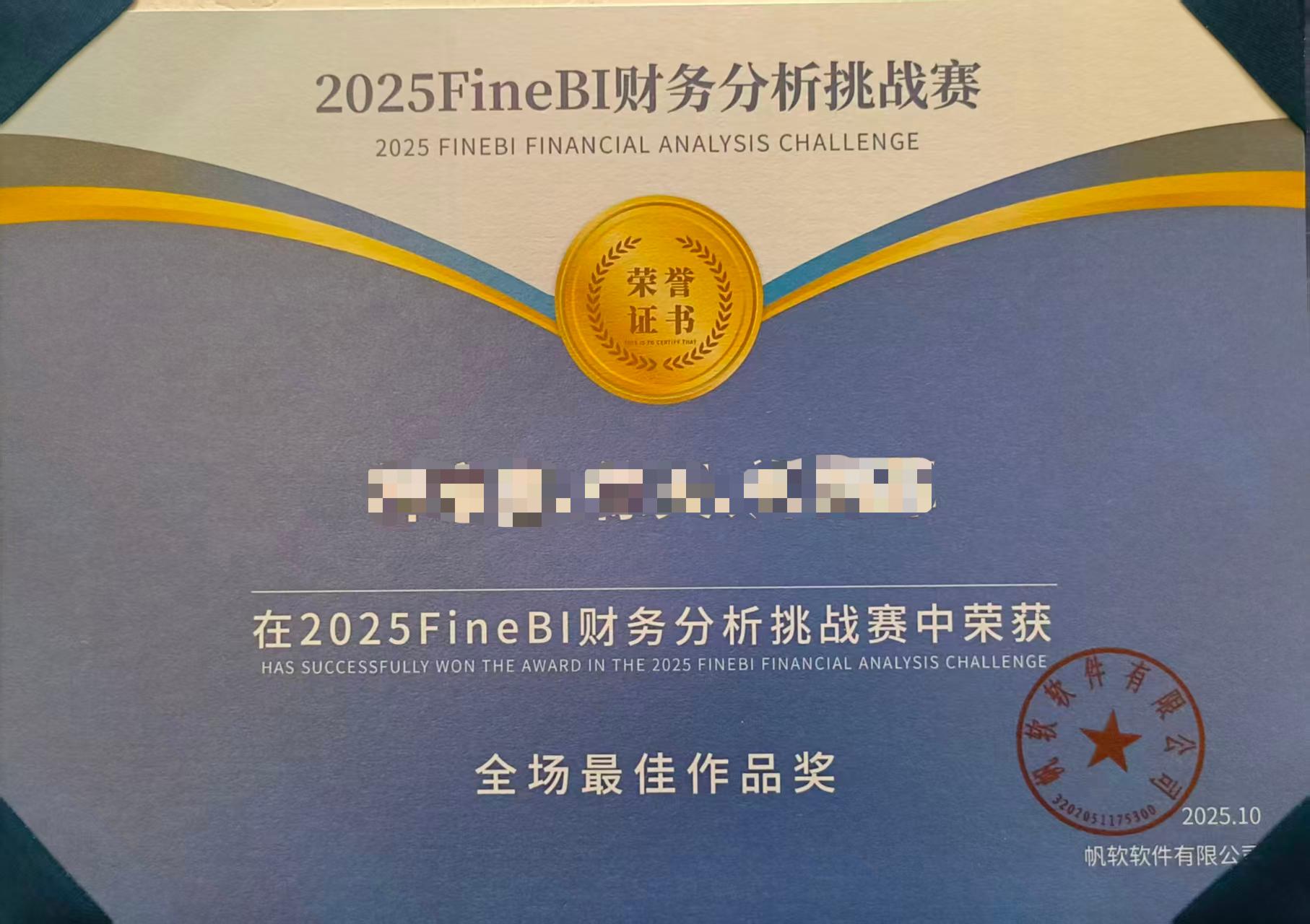 咨询业的本质,是跳出技术深井,与业务的脉搏同频共振。踏上新旅程,一度因为对新业务不熟悉而表现得呆萌,有时会被质疑到底会不会。没有被困难打倒,而是一点一点默默做记录。因为与业务更紧密,有了与CEO、业务线负责人一起参加运营月会的机会,近距离接触到一些CEO、产品、营销、客服、财务视角的想法与经验。对数据分析进行了进一步的思索:“数据不能仅是一份精彩的报告,还得是一套可执行、可追踪的作战方案“、”数据分析不能光自己一个人在嗨,给建议之前,至少得先问下相关同学“。将这些思考融入新的作品,参加了帆软财务数据分析大赛,以更成熟的理解再次拿到了“全场最佳作品”。