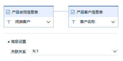 建立产品客户信息表和产品合同信息表之间的模型视图,使用终端客户(唯一)字段进行关联。