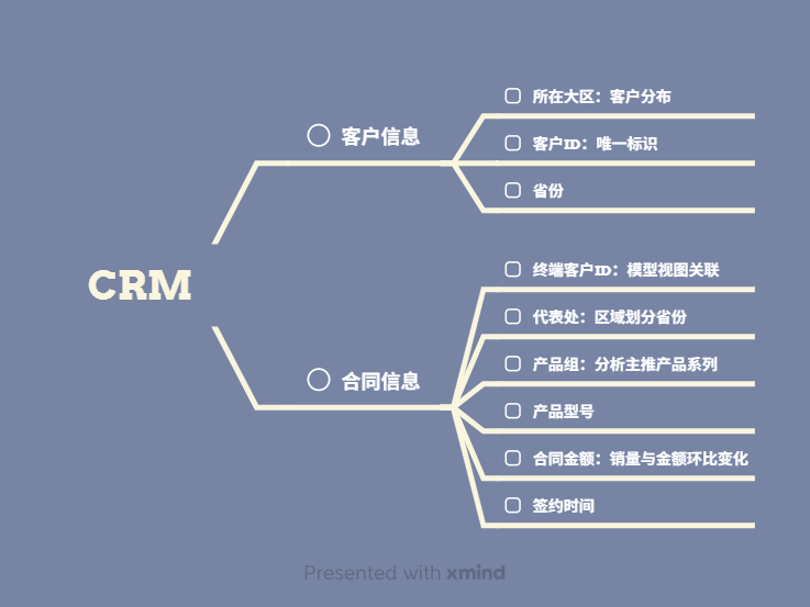 - 自选数据:从CRM系统数据库表筛选,选择产品客户信息表、产品合同信息表。