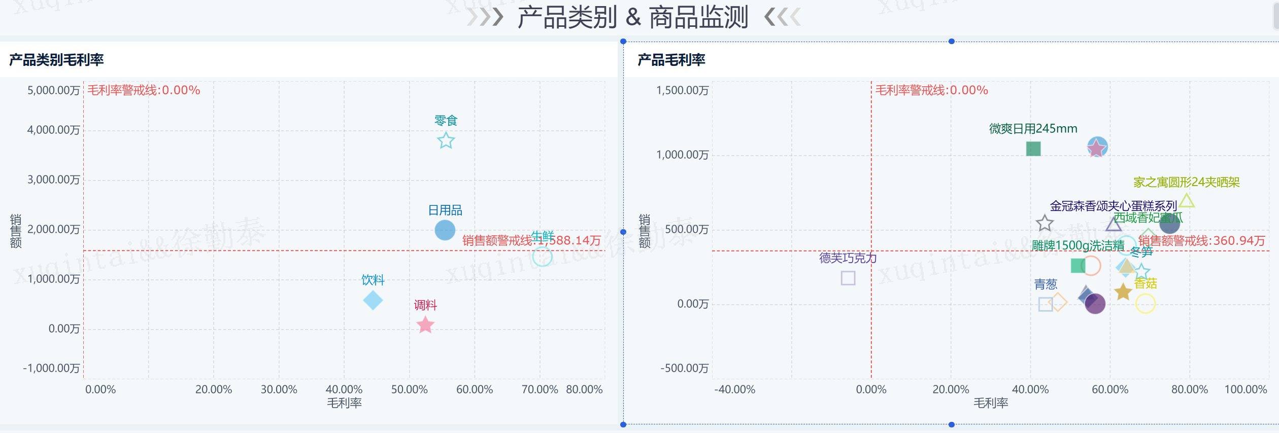 以上四个页面正好层层递进,可以全面排查利润率低的门店及商品,找到最终的影响利润的问题所在。