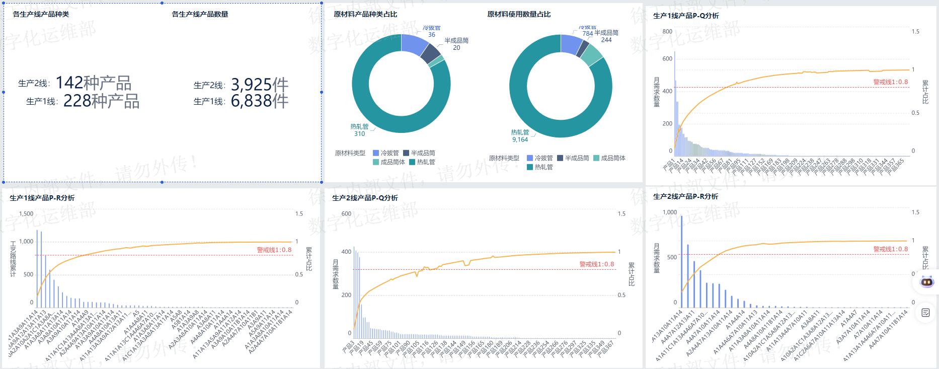 统计显示,热轧管需求占总量的85%(310种,9164件),冷拔管占7.3%(36种,784件),为原材料备货提供了明确依据。