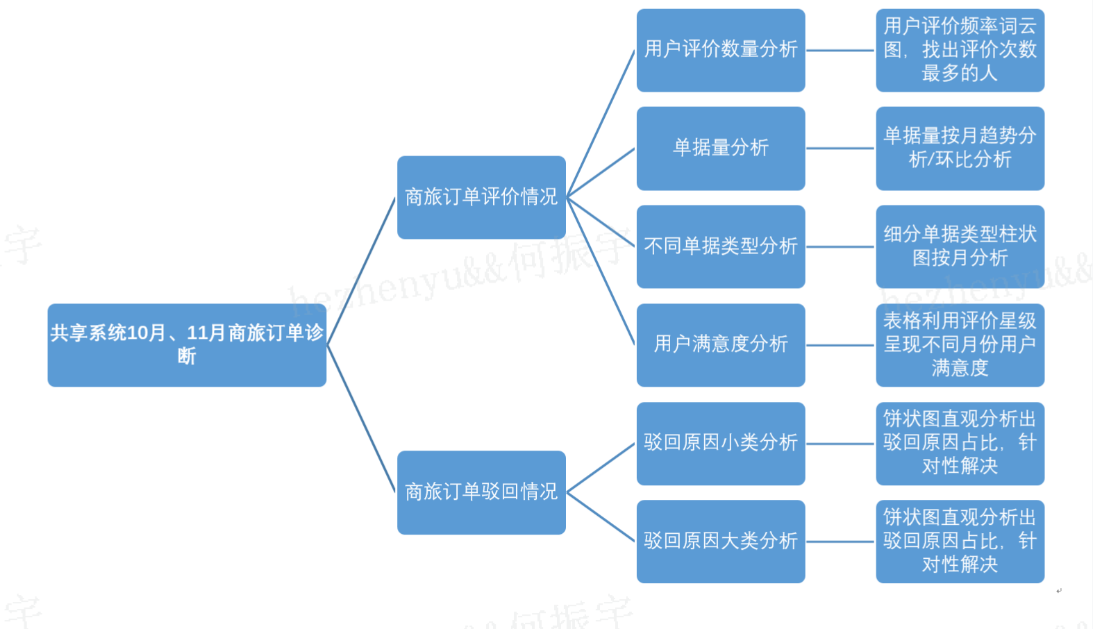 - 针对目前已经具备的10月,11月商旅单评价信息,通过数据分析,实现以下业务目标: