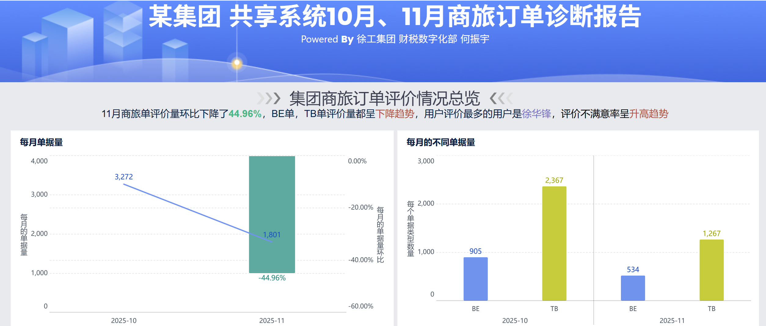 - 将数据分析仪表板等工具应用到工作汇报中,将数据的可视化应用到自己的工作中,也可以实施监督商旅订单的进展情况。