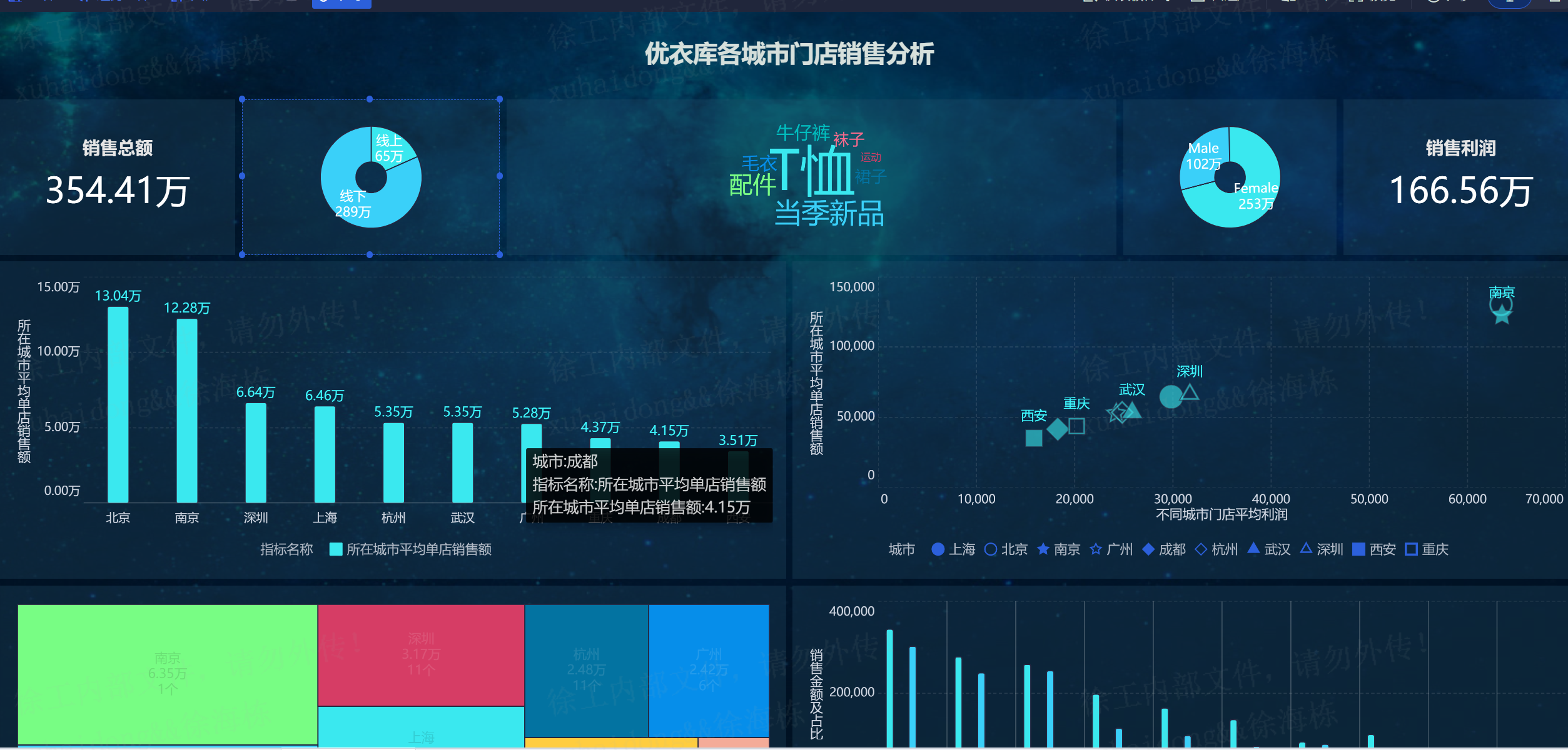 门店布局分析:各城市门店数量、单店销售额与利润对比;