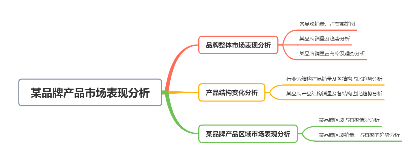 - 洞察整体销售业绩:了解产品销量同比、环比变化,某品牌产品市场占有率变化。